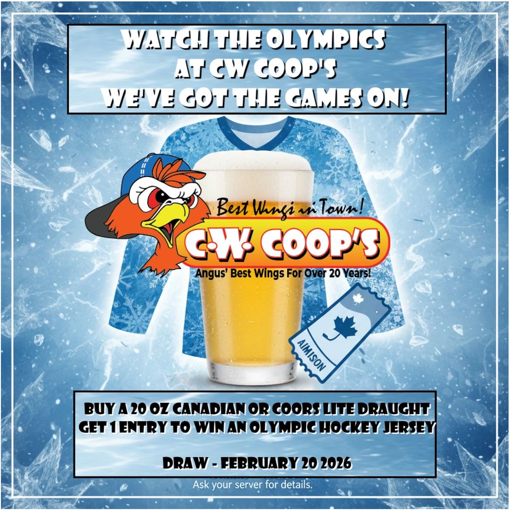 Catch the Olympics the way they’re meant to be watched—cold beer, big screens, and your crew at CW Coop’s - Angus.