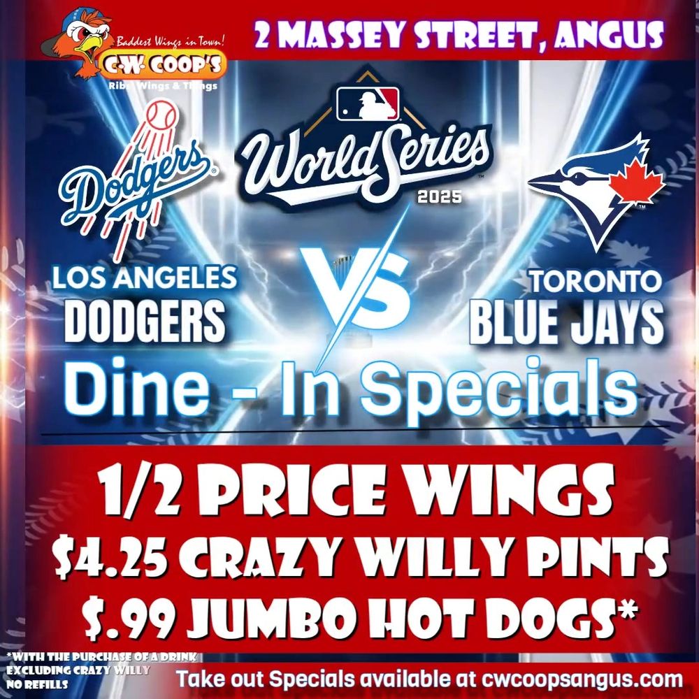 Whether your going out or staying in to watch the Blue Jay's bring home the win's, we got you covered! What is World Series beseball without wings & beer!